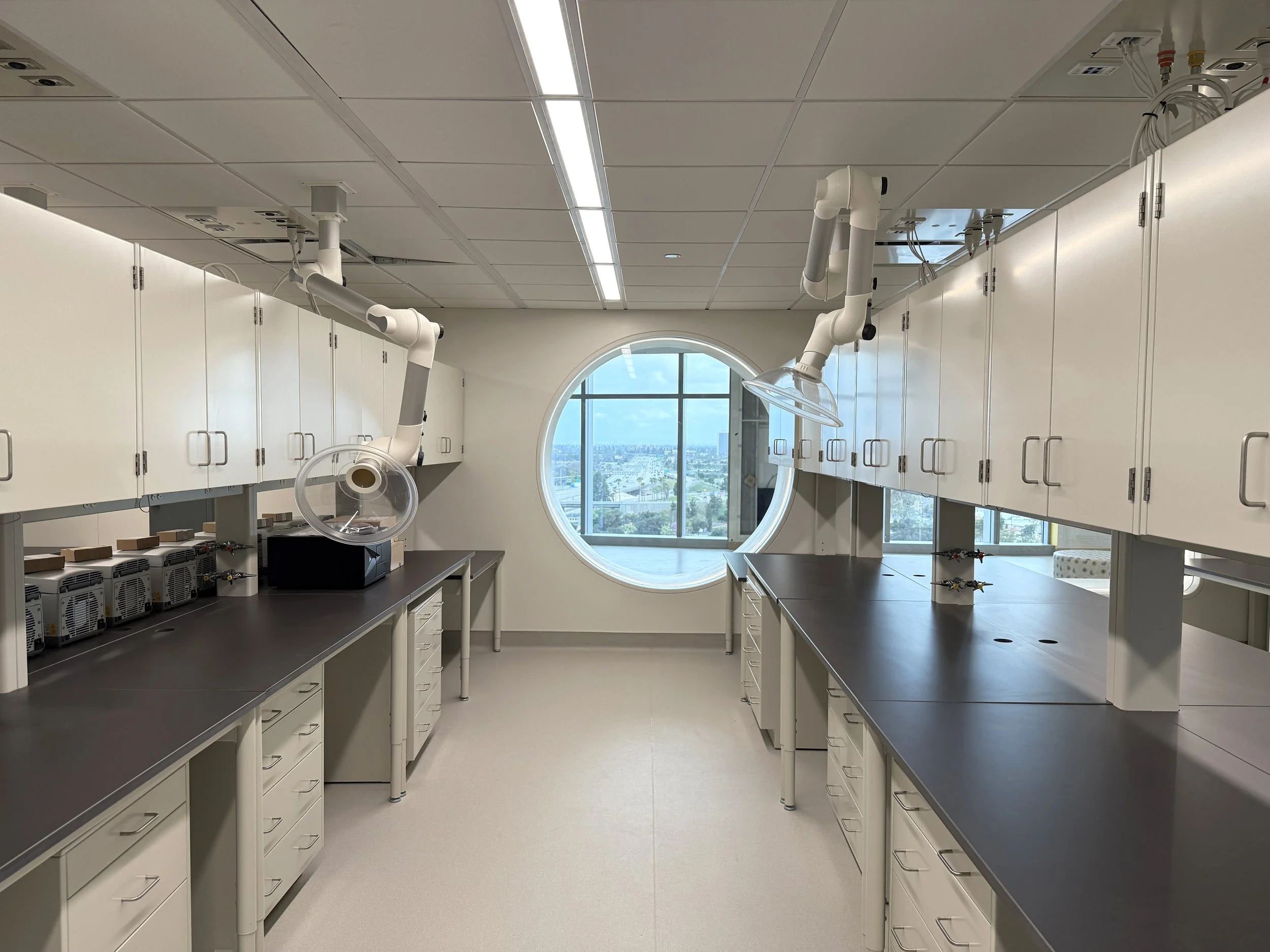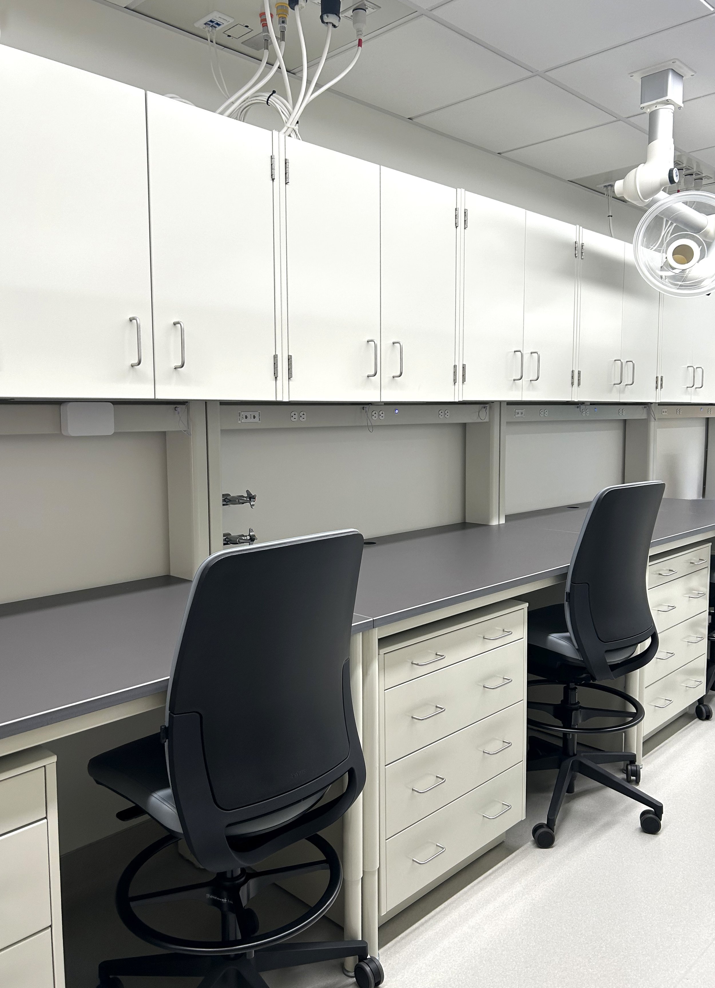 On the 9th floor, the basic and translational laboratories are outfitted with 46 of Mott Manufacturing’s Optima™ benches with integrated EdgeWave™ LED task lighting, painted steel casework and Fundermax phenolic resin work surfaces. These flexible, durable workstations provide the foundation for groundbreaking research - supporting scientists as they develop new drugs, devices, and diagnostics to advance pediatric care.
